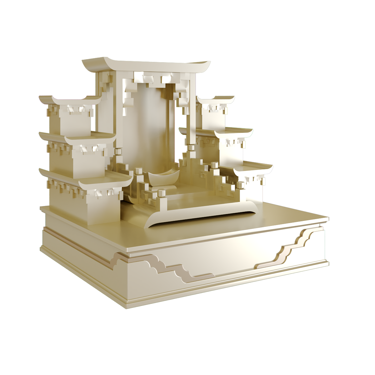 Bàn thờ tam cấp Dànam vượt ra ngoài những thiết kế bàn thờ thần tài thông thường, mang đến một không gian thờ cúng thanh tịnh và trang nghiêm. Với cảm hứng từ cổng trời, bàn thờ tượng trưng cho sự an yên và bình an trong cuộc sống. Thiết kế hình khối ba chiều, uốn lượn như mái chùa cổ, không chỉ thể hiện sự tinh tế mà còn mang lại cảm giác vững chãi, bền bỉ. Bát nhang được cách điệu giống như một thỏi vàng, giúp thu hút vận khí tài lộc cho gia chủ, trong khi bậc thang tượng trưng cho sự thăng hoa tinh thần, khẳng định giá trị tâm linh sâu sắc. Đặc biệt, bàn thờ tam cấp Thiên An mang linh lượng “Đại Cát”, đem lại may mắn và sự thịnh vượng cho gia đình.