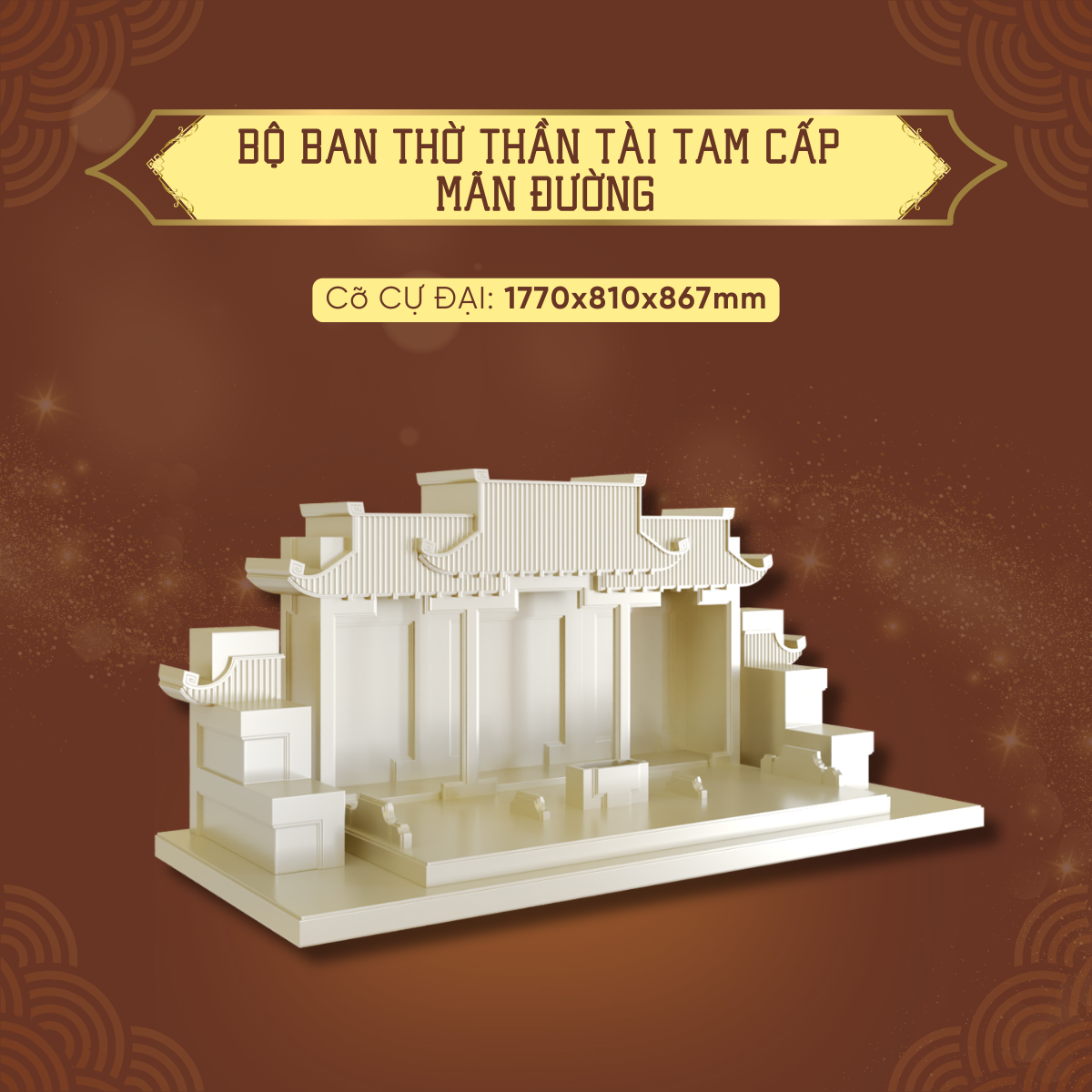 BỘ BAN THỜ THẦN TÀI TAM CẤP MÃN ĐƯỜNG