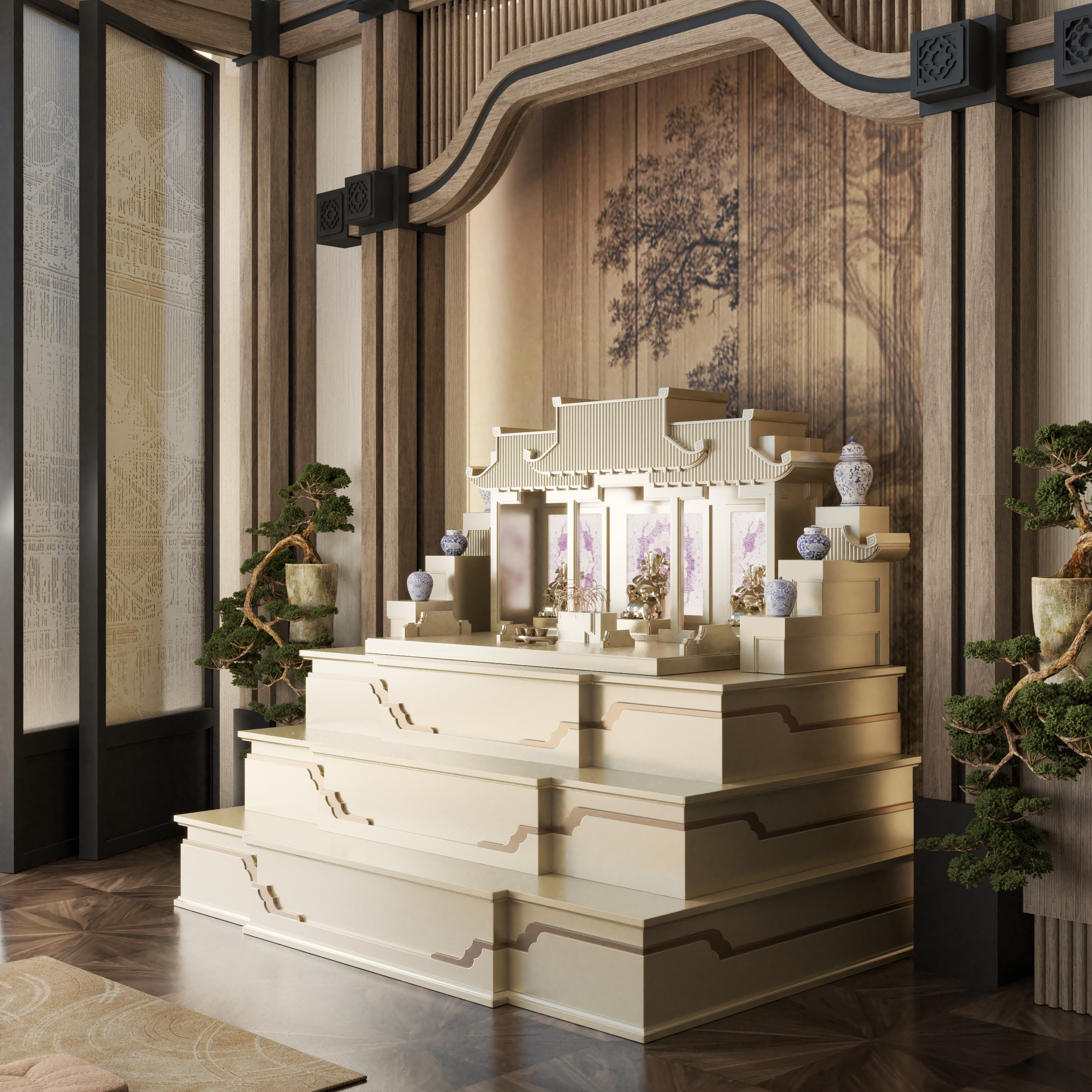 – Khác biệt với những bục kê thờ thông thường, Bục Thiên Vân được tạo hình dựa trên linh tượng “mây lành tụ đỉnh” – biểu trưng cho dòng khí cát tường khởi sinh từ trời cao, quy tụ về nơi thờ tự. Các đường gờ nổi uốn lượn mềm mại như vân khí chuyển mình, giúp trường năng lượng lưu thông hài hòa, giữ cho không gian thờ luôn an tĩnh, thanh sáng và trang nghiêm.