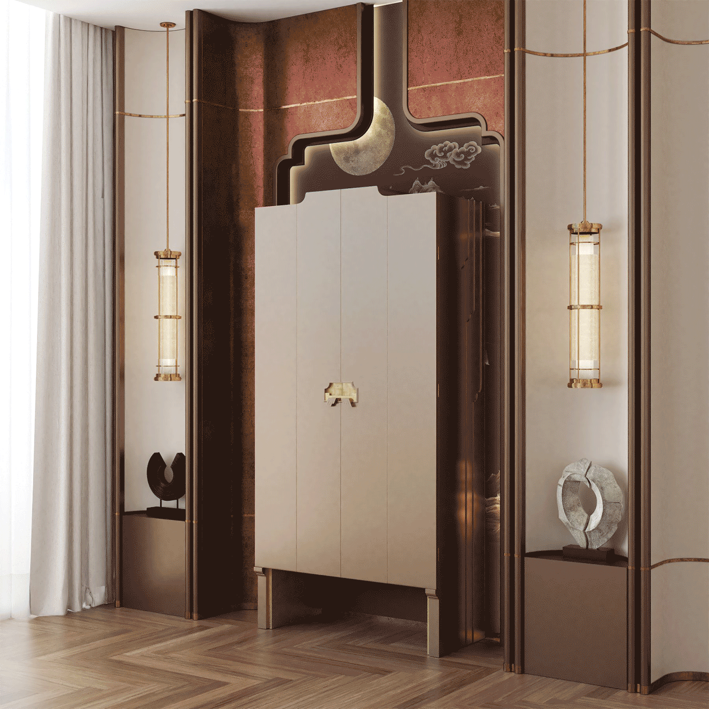 Tủ Thờ Thiên Ân Kim ra đời như một lời giải trọn vẹn – một cuộc cách mạng tinh tế trong thiết kế nội thất thờ cúng của người Việt. Không phô trương theo cách thông thường, toàn bộ không gian thờ được bảo tồn trọn vẹn phía sau hệ cánh tủ đóng kín đáo – như một kho báu linh thiêng được nâng niu gìn giữ.